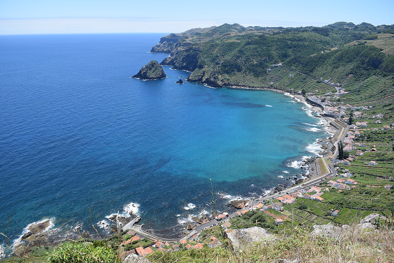 Pico Alto (587 m), Santa Maria's highest point, offers panoramic views of the entire island and on clear days shows São Miguel to the north. The hike takes about 2 hours. The area has well-marked walking trails and MTB routes.